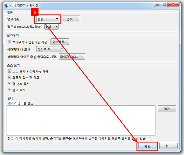 2) 경고 또는 오류 찾기(오류는 반드시 수정, 경고는 준수)